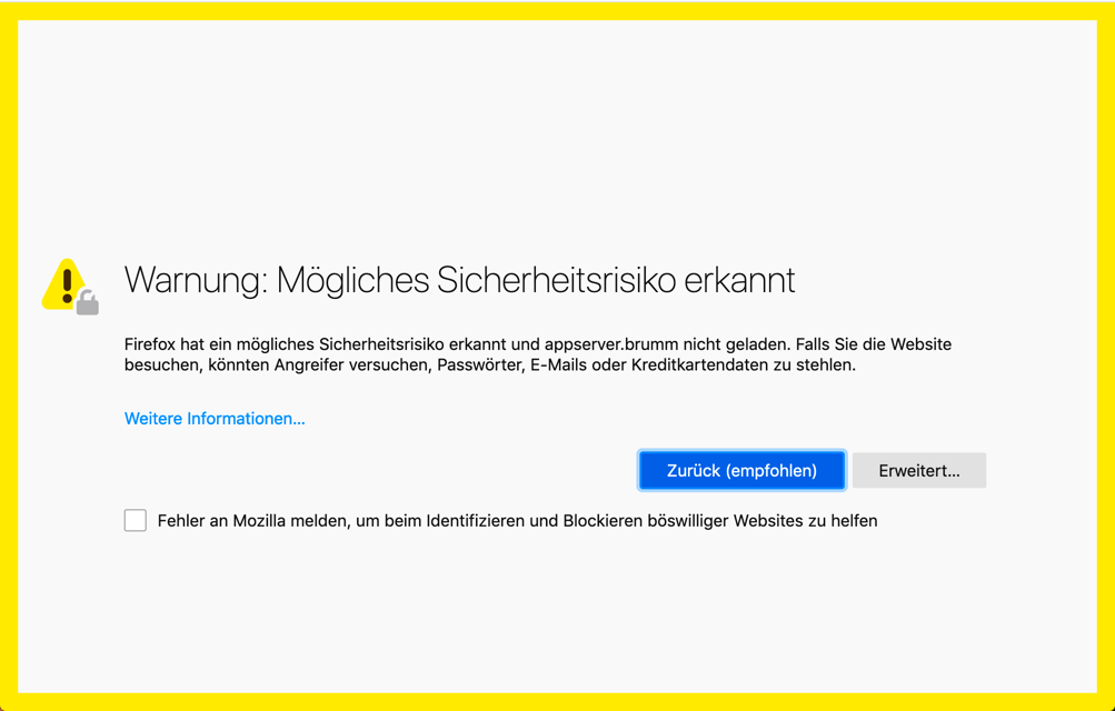 Hier beispielsweise die Warnseite von Safari unter macOS:
